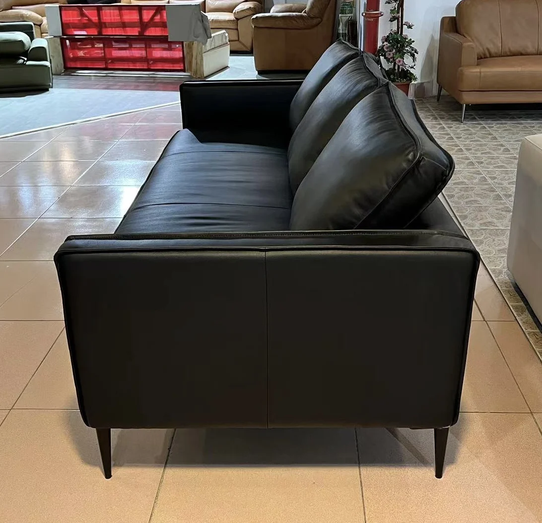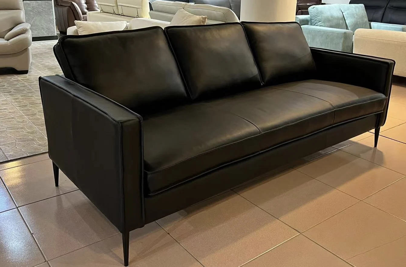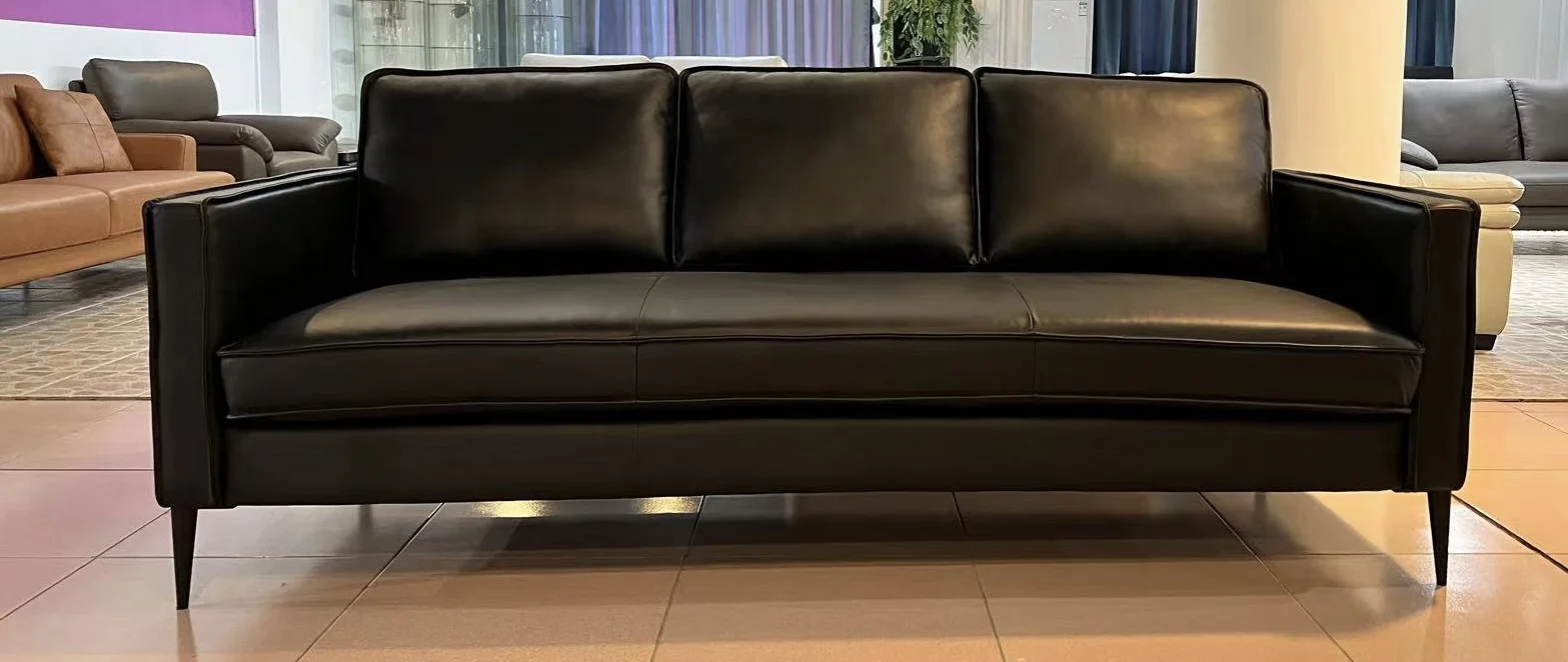 The Lea Leather Sofa is designed for those who value both sophistication and everyday comfort. Upholstered in top grain cowhide leather on all contact surfaces, it offers a smooth, premium feel that develops a natural patina over time. The full black finish creates a bold, contemporary statement, making this sofa a versatile centerpiece for modern interiors.