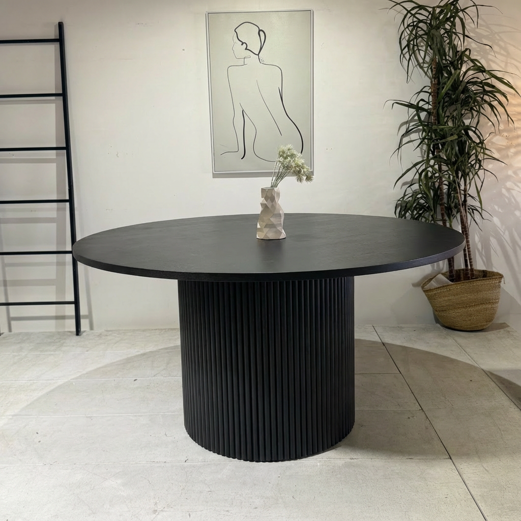 The Marina 150 cm Dining Table in black Finish blends simplicity with timeless craftsmanship, making it an elegant centrepiece for your dining space. Designed with smooth rounded edges and a refined silhouette, this table offers a warm, inviting look that complements both modern and Scandinavian-inspired interiors.