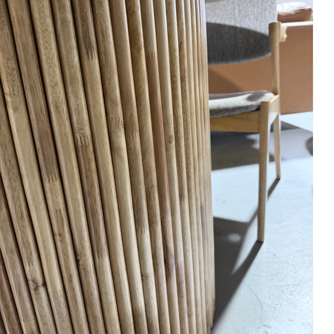 The minimalist leg design provides excellent support without feeling bulky, ensuring the table is both functional and visually balanced. With its versatile natural finish, the Marina dining table pairs effortlessly with fabric, timber, or PU dining chairs.