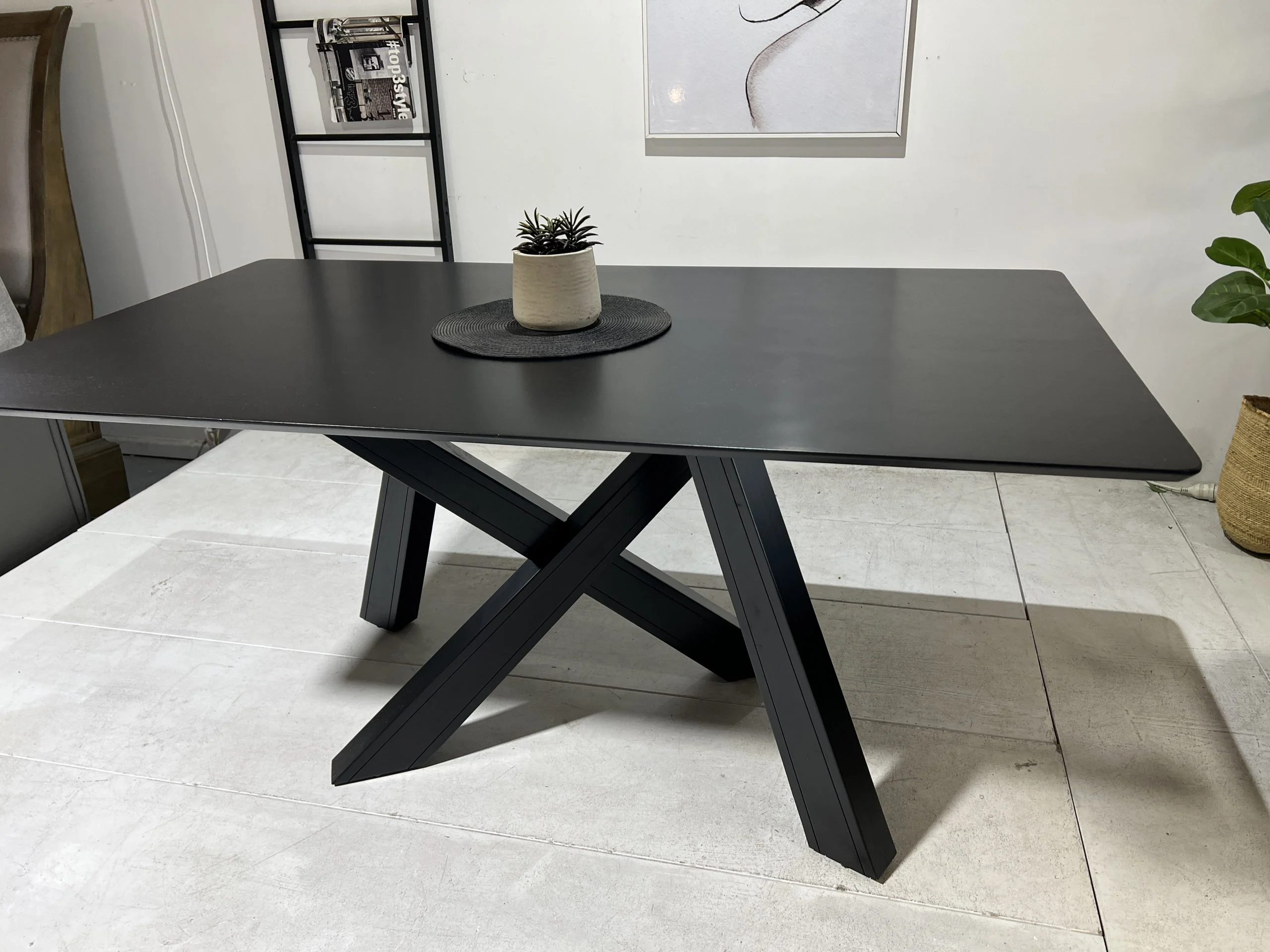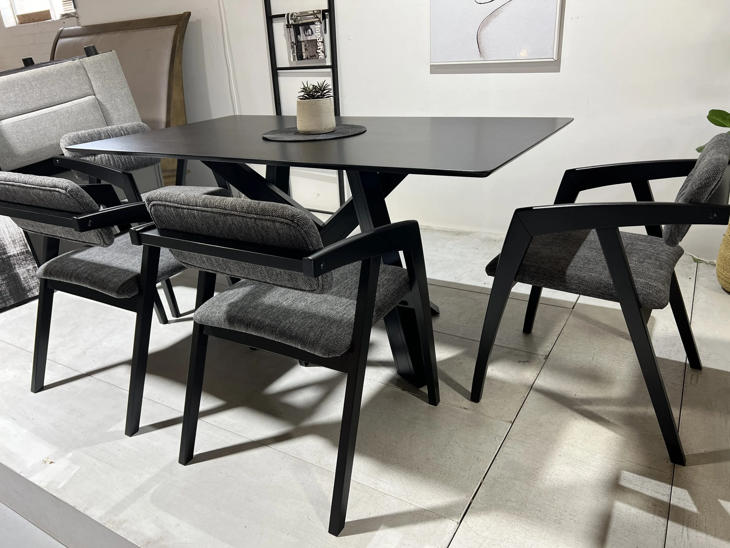 The New Jersey Dining Table combines contemporary design with everyday practicality. Finished in a sleek full black, it delivers a strong visual impact while blending seamlessly with modern interiors. Built with a sturdy frame and a spacious rectangular top, it comfortably seats 4–6 people, making it ideal for both family meals and dinner parties. Its durable construction ensures long-lasting use, while the minimalist silhouette allows it to pair easily with a wide range of dining chairs. Designed for those who value both function and style, the New Jersey Dining Table is a practical yet sophisticated addition to any dining space.
