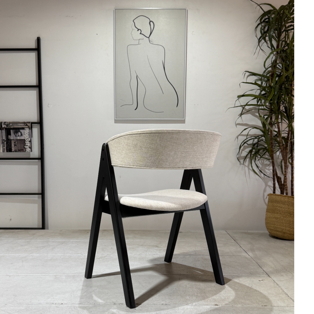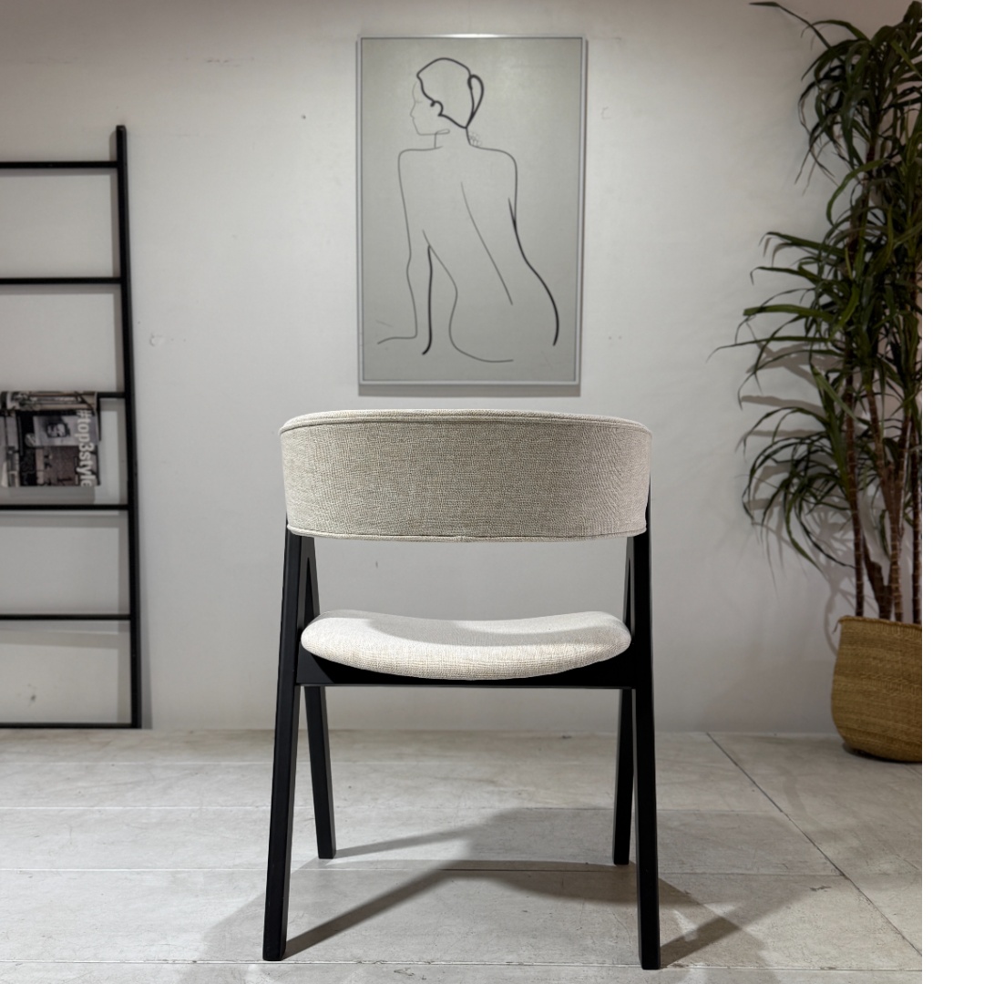 The Nicole Dining Chair is a stylish blend of comfort and sophistication. Upholstered in beige fabric, it offers a soft, neutral tone that complements a wide range of dining tables and décor styles. The strong black legs add contrast and structure, creating a striking yet balanced look that works beautifully in both contemporary and classic interiors. With its cushioned seat and supportive backrest, the Nicole Chair provides everyday comfort while maintaining durability for long-term use. A perfect choice for family dining rooms, kitchens, or entertaining spaces.